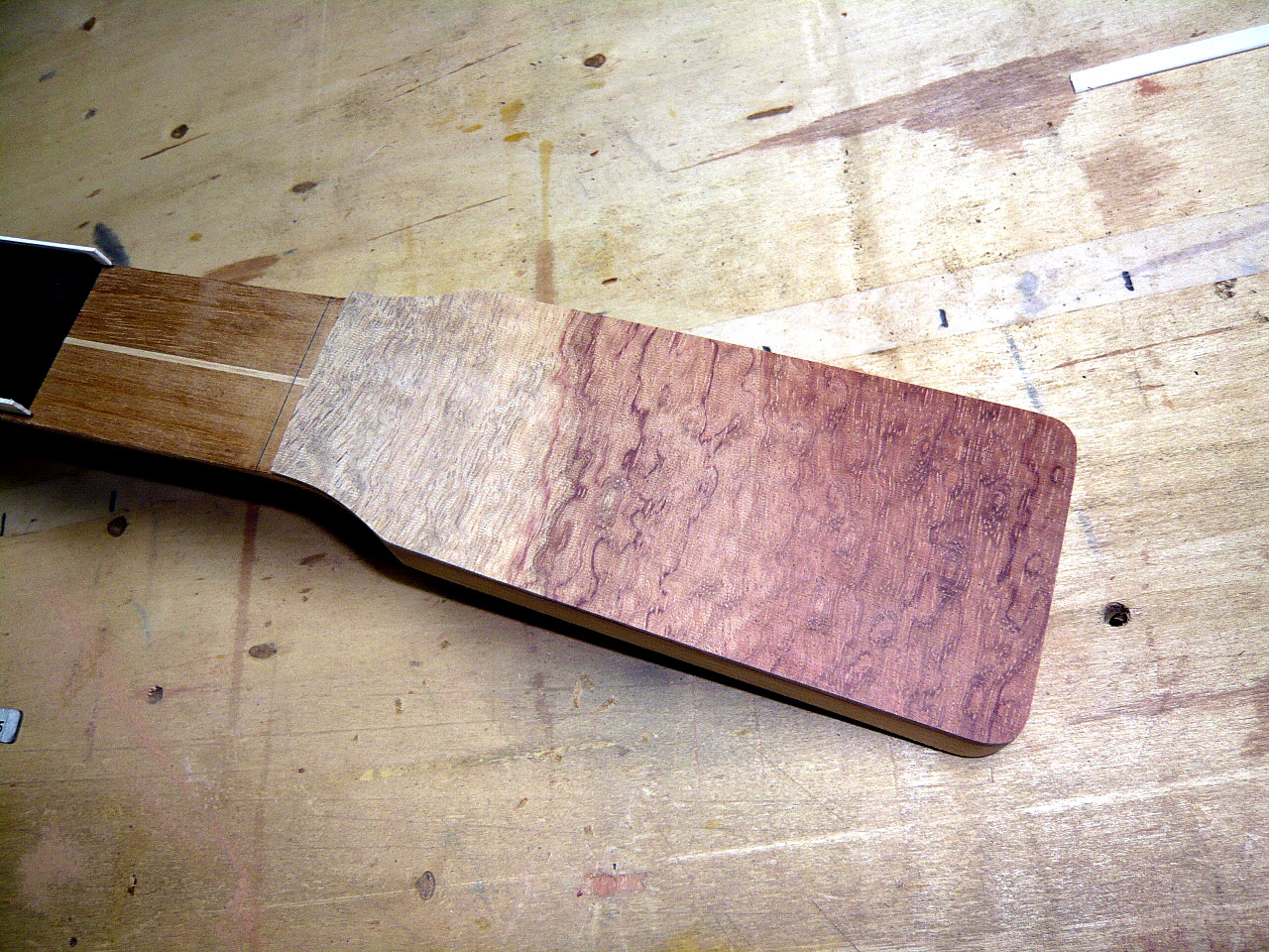 元々、1枚の板からヘッド部分をカットし、反転して張り合わせた場合の補強の意味があった様だが、今回は飾りとして......