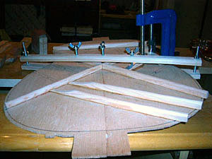 表板のブレージングの整形と接着を続けています。全部一度に固定できないので乾くのを待つ間(1日待てないので1時間位)、例のゴシゴシをやって暖まっては接着するのですが要領がわるくてなかなか進まない。ブレージングに他のブレージングが食い込む隙間を開けるのは難しい!きれいに出来ないよ・・・・ゴシゴシ・・・