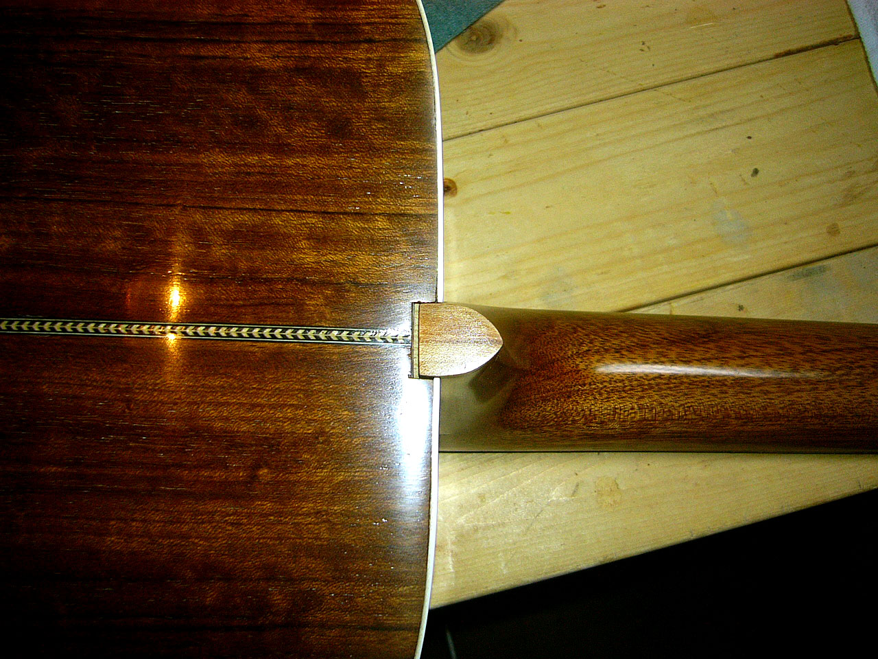 ボディ側のジョイント部分です。ブリッジ、ピックガードはまだ仮置きです。