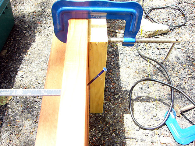 手で押さえて打ち込むと必ずずれるので、写真のようにクランプで固定して